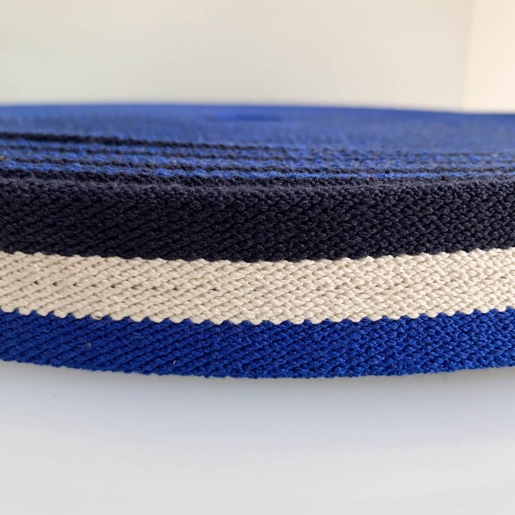 Стрічка ремінна еластична DF 35 мм б/п т.синій індиго білий смужка Італія
