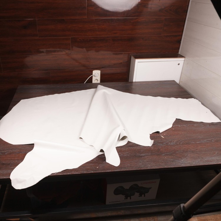 Використовується для виробноцтва взуття та різноманітної галантереї. Колір - білий Вайт Оф Середній розмір одного листа шкіри 1,70 м2 або 170 дм2. Мінімальне замовлення один лист шкіри.Характеристики